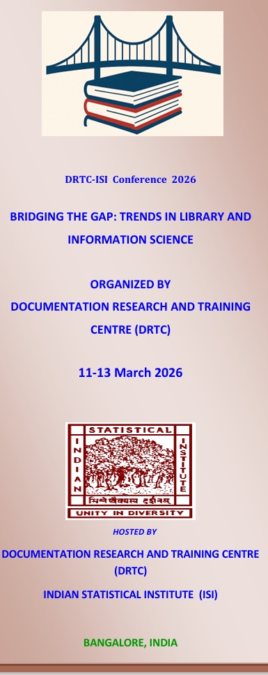 | About Event: | We are pleased to invite submissions for the Annual Conference on “Bridging the Gap: Trends in Library and Information Science,” organized by the Documentation Research and Training Centre (DRTC), Indian Statistical Institute. This in-person event will take place from March 11-13, 2026, at the ISI Bangalore Centre. This three-day event will feature two integrated components: (1) Workshop and (2) Conference |
